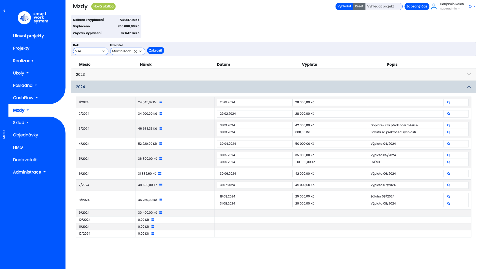 Jedním z největších přínosů softwaru SMART WORK SYSTEM je maximální zjednodušení administrativní práce, spojené s vypočítáváním mezd zaměstnanců.