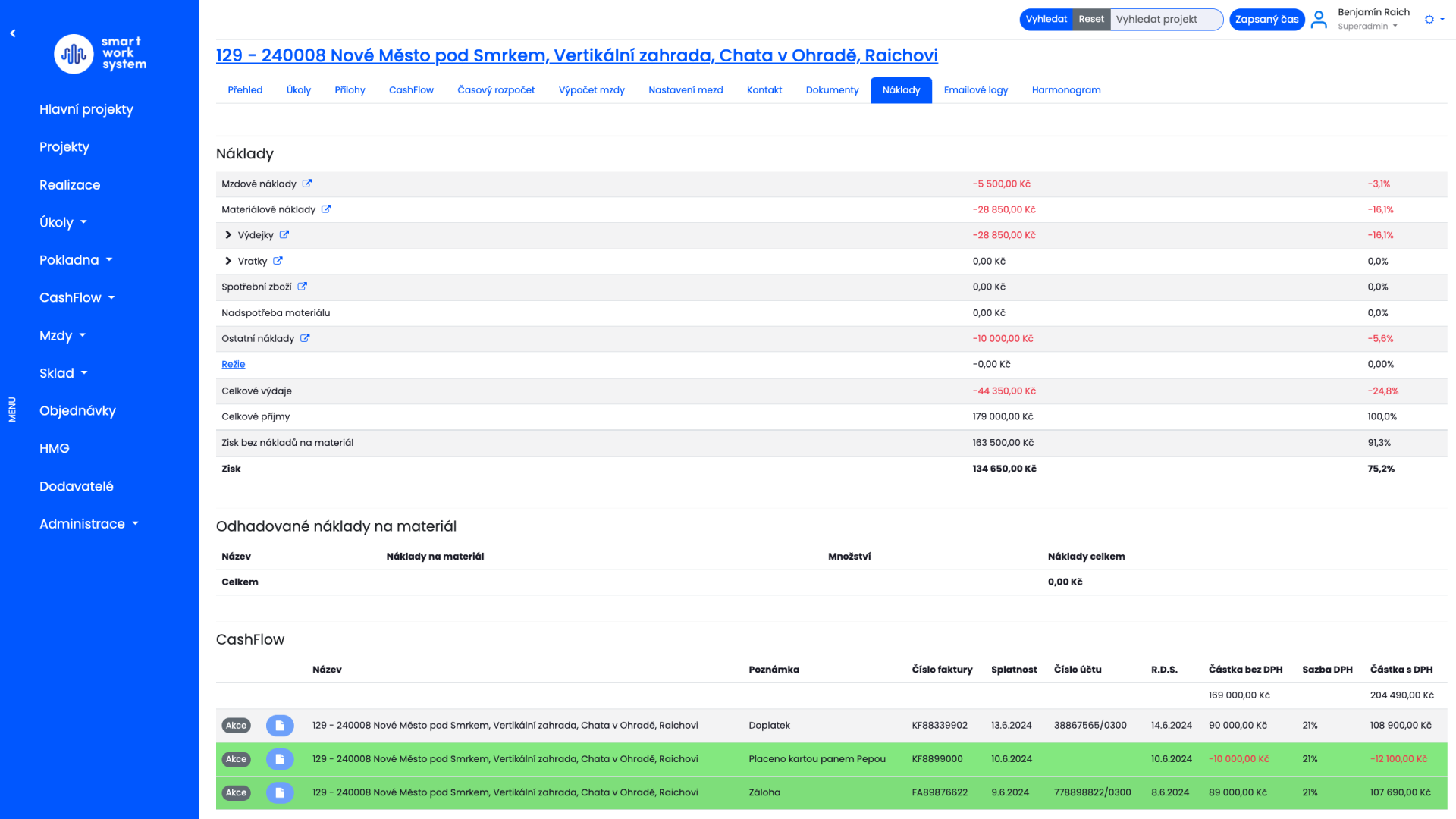 Velkým pomocníkem je dokonalý přehled nad ekonomikou jak samotných projektů, tak celé firmy.